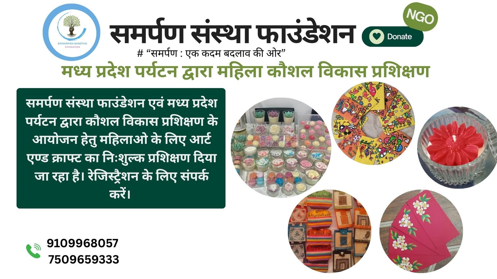 Samarpan Sanstha Foundation and Madhya Pradesh Tourism are organizing skill development training, under which free Art and Craft training will be provided for women. For registration, please contact.